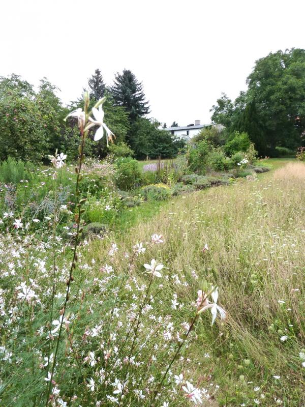 Am frühen Morgen sind die Gaura noch wirklich tapfer. Ab Mittag sind alle Blüten hinüber, abends sehen sie traurig aus. Doch morgen früh gibts neue Blüten.
