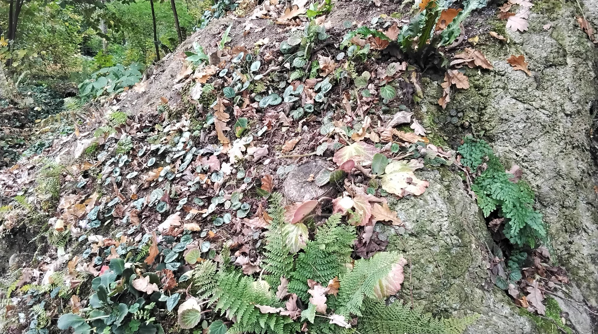 Diese C. coum hab ich letztes Jahr als zwei Jährige an eine steile Lehmwand gesetzt, mal schauen wie sie sich da machen.