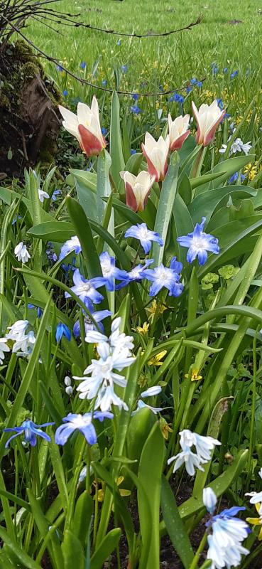 Vor allem in der Shrubbery, wo ich Scilla siberica inzwischen recht flächendeckend habe.