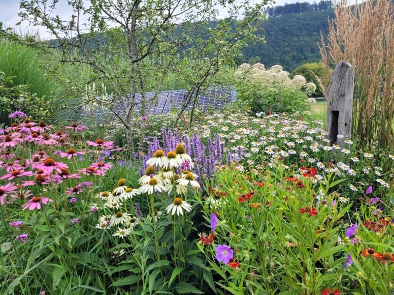 Cornus Beet mal von hinten, auch wenn der Blick auf unsere Solaranlage hinten am Kompostplatz fällt. :D