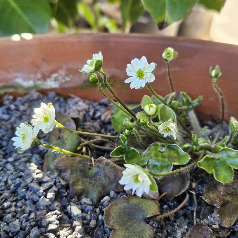 ein gefüllt blühendes Hepatica japonica von Härtle 2021 - draußen im hohen Kübel kultiviert. Bisher klappt das.