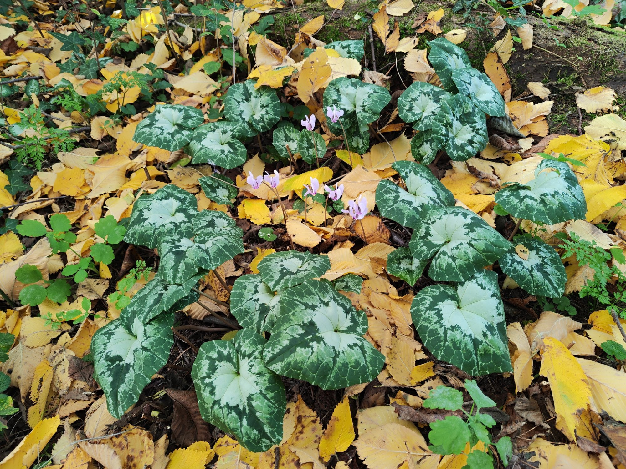Die silberne Blattfärbung scheint bei den Cyclamen hederifolium dominant zu sein - sie taucht in meinem Garten an den verschiedensten Stellen auf, obwohl ich die Silberlinge immer ausmustere.