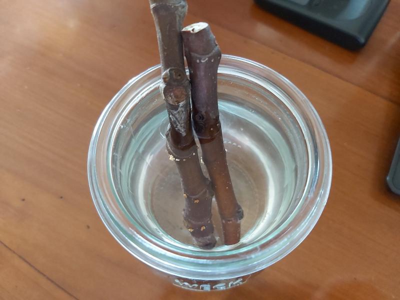 Vor Kurzem hab ich ein paar Ravin de Calce-Stecklinge zum Testen in ein Wasserglas gestellt. An den Stecklingen hat sich Kallus gebildet und es dürften sich wohl demnächst Wurzeln bilden :D