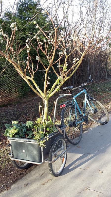 Bei uns ist die alljährliche Wanderung auch fast abgeschlossen. Da wir im Gewächshaus nicht heizen, stehen da jetzt getopfte Gehölze, die bei uns die scharfen Winterwinde nicht mögen. Rosen, Ahorne, eine Kiefer, Judasbäume, Zierkirschen, kurzfristig noch Pawpaw (fliegen die Woche raus), usw.