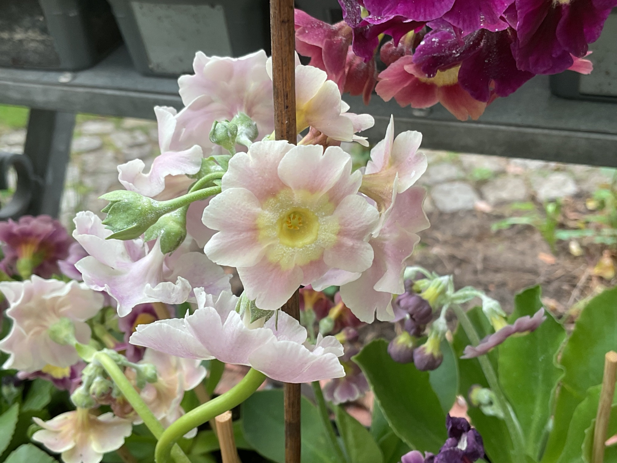 Ich mag auch die kleinen Blüten sehr gerne, die helle fliederfarbene erinnert mich an P. siboldii und harmoniert gut mit der hellgelben daneben. Anfangs dachte ich, die Blüten wären angefressen.