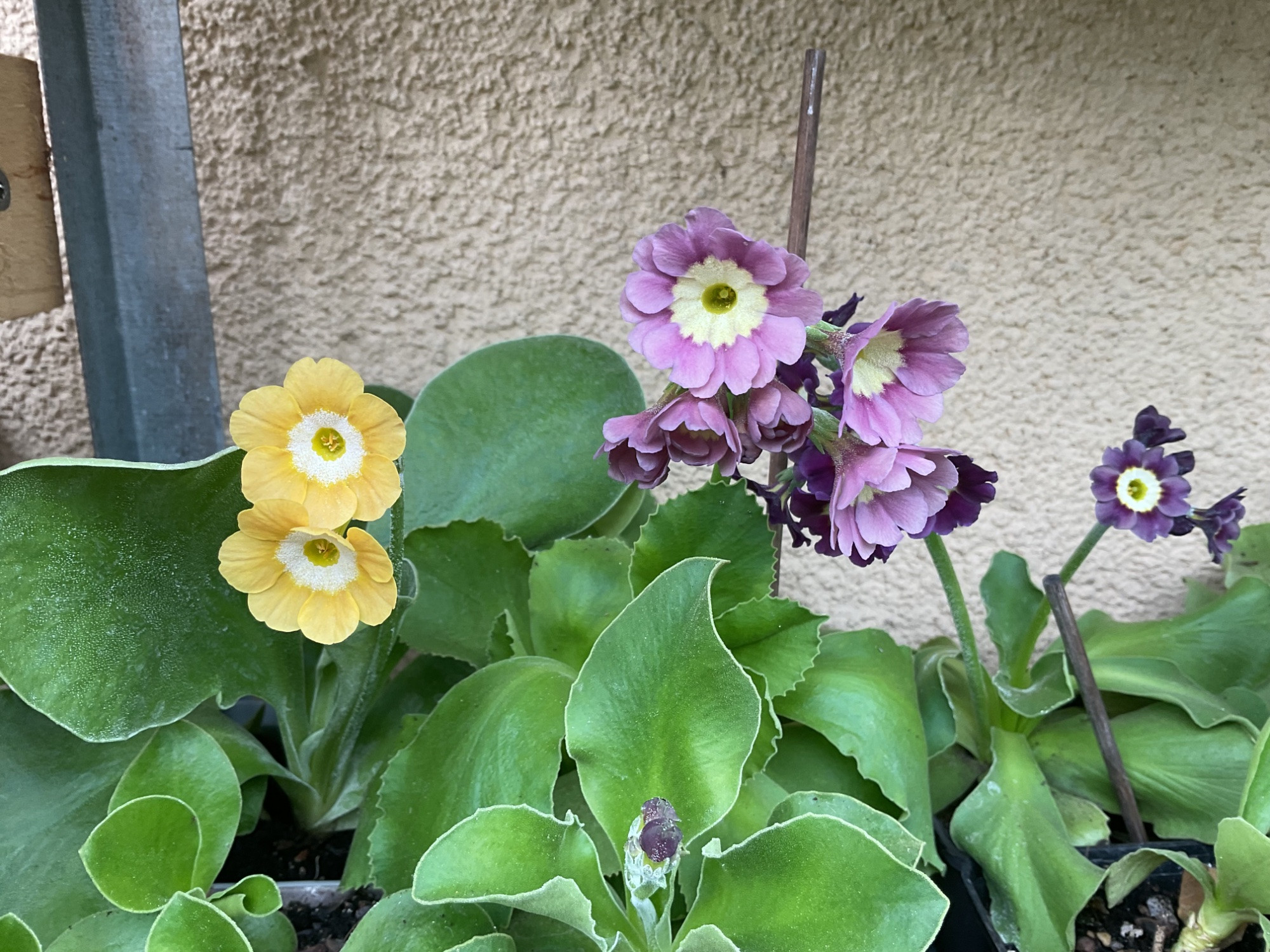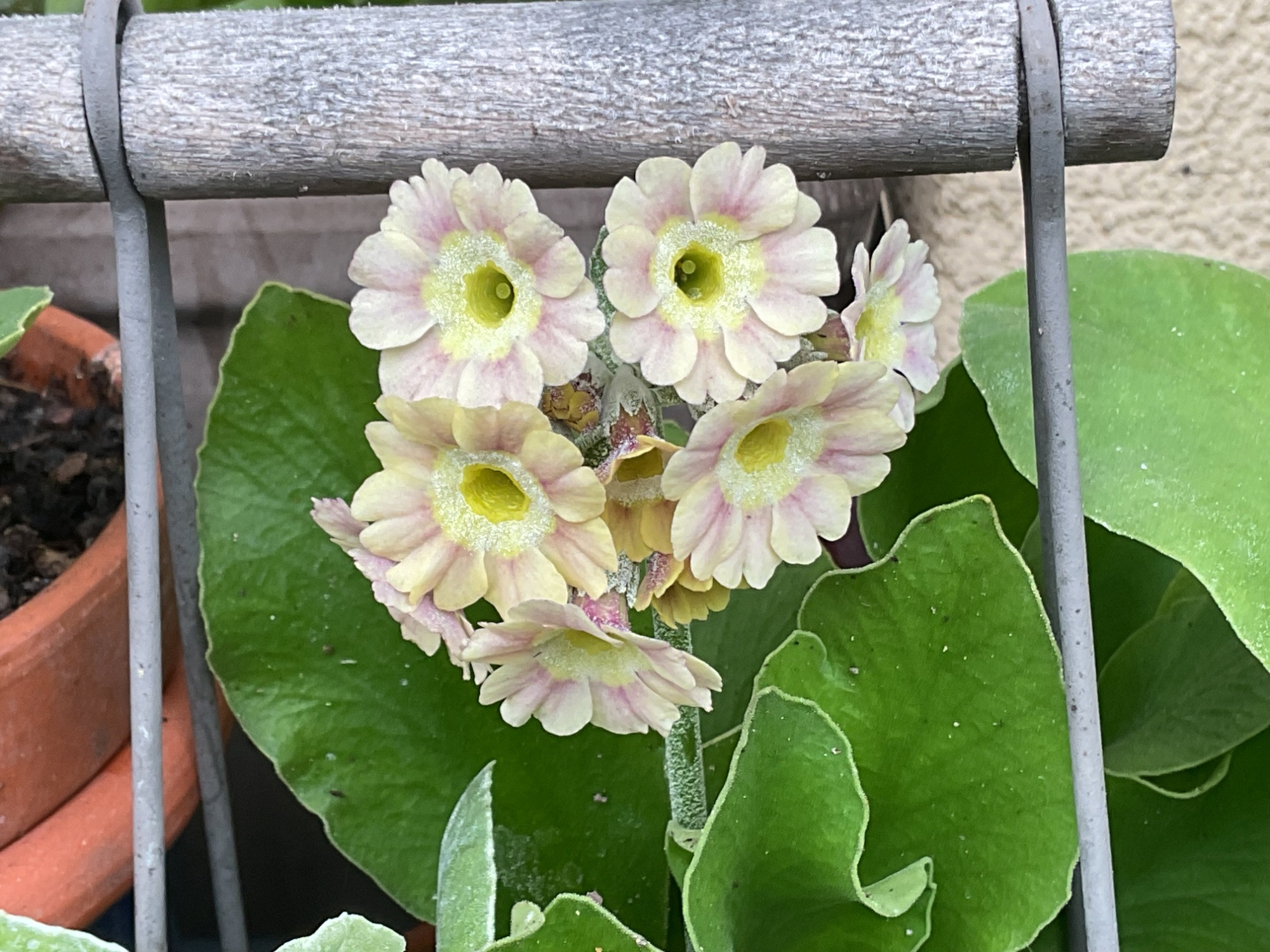 Zu Ostern habe ich mir eine gebrauchte verzinkte Metalltreppe als „Aurikeltheater“ gegönnt.