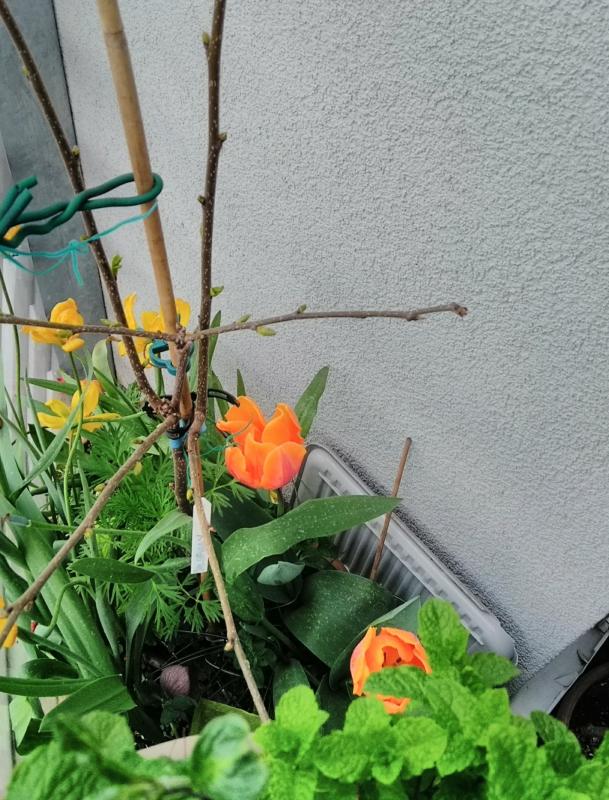 Die Zweige zeigen neue Knospen, es geht also weiter. Erfreulich finde ich die Frostschäden dennoch nicht, immerhin hatten wir min. -8°C in diesem Winter, der Spätfrost war bei -2°C. Wie soll die Pflanze dann mal nach einem echten Winter überleben?