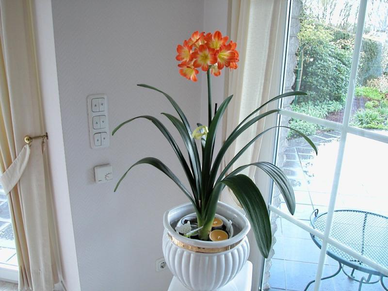 Kossi,meinst Du damit, dass die Klivie im kalten Überwinterungsraum war und Du zu spät gesehen hast, dass sie schon Blüten gebildet hatte?Ich weiß nicht, ob die chinesischen Klivien so wie viele Belgische Hybriden einen zweiten Blütenstiel ausbilden. Ich habe bei meiner eigenen Kreuzung „gelbblühende belgische Hybride X Sir John Thouron“ aus dem Jahr 2012 auch aus einem Samen eine Zwillingspflanze bekommen. Diese Zwillinge sind aber erheblich kleiner als ihre Geschwisterpflanzen aus derselben Kreuzung. Sie stehen alle in derselben Topfgröße. Ich werde die Zwillinge jetzt einmal etwas mehr düngen. Vielleicht kommen sie dann verstärkt in die Gänge? Sie mussten sich bisher ja die Nährstoffe teilen. Die anderen Klivien konnten sie für sich allein verbrauchen.Viele GrüßeElkeElke,den Zeitpunkt die Pflanze auszuwintern hatte ich etwas verschlafen. Ich war nicht darauf gefasst, das sie schon blühen will.