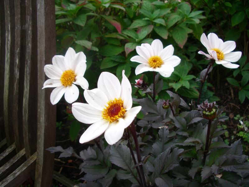 Hier blüht noch ein getopfter dunkellaubiger Sämling, hab mal schnell noch ein Foto gemacht. Die Knospen werden wohl auch nicht mehr zur Blüte kommen, häwimädel. Bei 3° nachts ist es bald vorbei mit den Blüten.