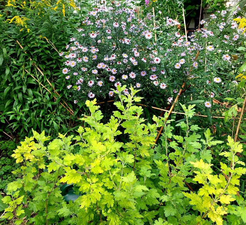 Hier blüht Aster oblongifolius (ich meine 'October Skies') schon seit ein paar Wochen. Sie hat sich allerdings gelegt.