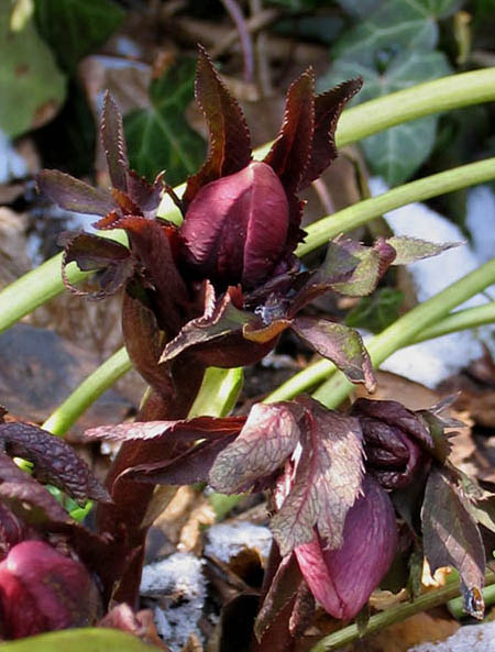 ... frage mich, wie viele Male die Helleboren das gefrieren - abliegen, auftauen - aufstehn mitmachen.