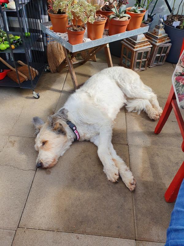 Gerade kam wie auf Kommando ein Schauer runter - aber im GH ist es dann eigentlich auch gemütlich .Sieht Lua Hund auch so und macht hier gerade ein Nickerchen 🥰