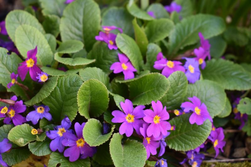 Dieser samtrote Barnhaven-Sämling steht hier schon einige Jahre und wurde schon mehrfach geteilt. Einige Blüten hat der Frost zwar erwischt, aber ansonsten ist diese Primel sehr robust.