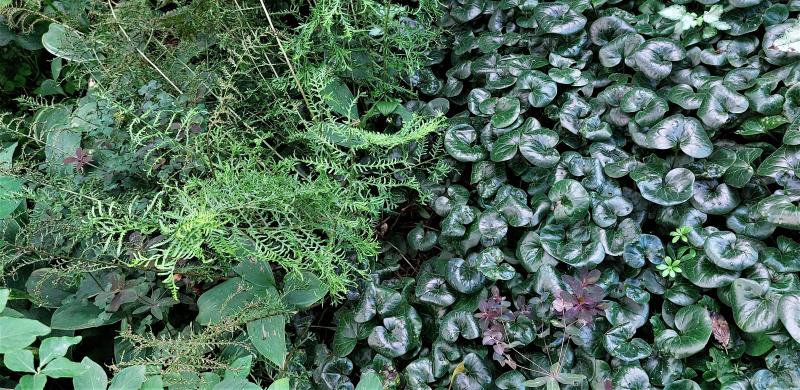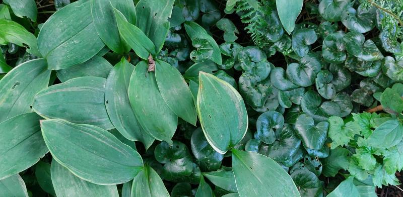Mal sehen, wer sich auf Dauer in der Fläche durchsetzt: Panaschierte Maiglöckchen oder (und) Haselwurz...