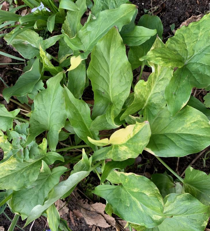 Kann es sein, dass Arum italicum mehr oder weniger vergrünt? Ich habe das Gefühl, meine (eh schon mickernden) Exemplare zeigen jedes Jahr weniger Blattzeichnung, 'Chameleon' eingeschlossen. Da Arum maculatum hier schneller wächst und wuchert, als man sich das wünschen würde, hatte ich gehofft, auch mit Arum italicum Erfolg zu haben, aber bisher sieht es nicht danach aus, es wächst eher rückwärts. :-\