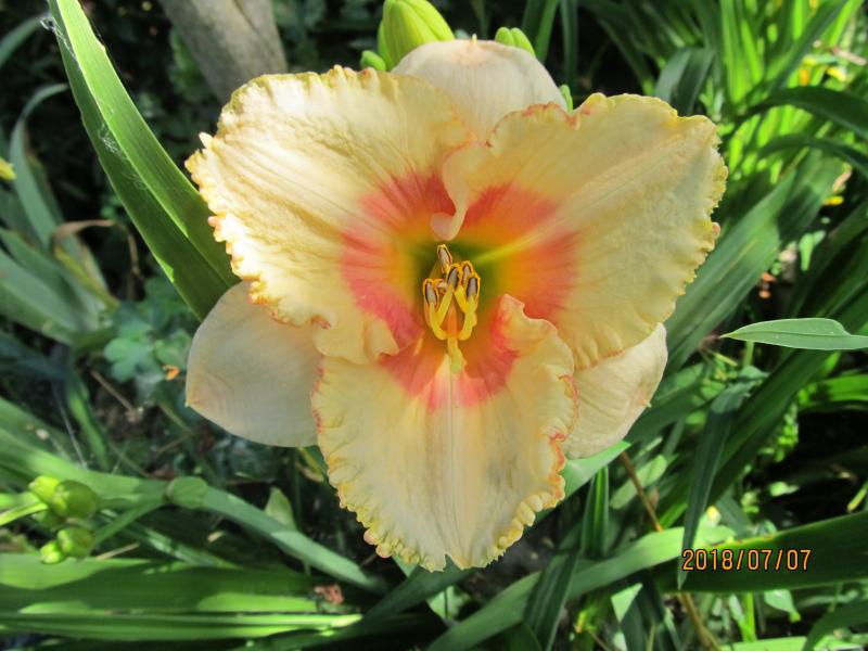 Inzwischen blüht hier eine der späten Dauerbrenner - extrem verzweigt, treibt laufend Knospen nach, blüht bis in den Oktober. Die Genetik ist rätselhaft - angeblich ist die Sorte tetraploid (ist aber nicht registriert - von Olallie aus Vermont), Kreuzungsversuche waren bislang weder mit Tet- noch mit Dip-Sorten wirklich erfolgreich, es gibt aber immer wiede Bee Pods (wild bestäubte Samenkapseln).