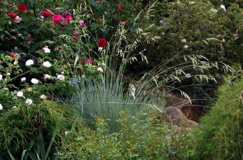 Stipa gigantea wächst hier seit etwa zehn Jahren auf gut drainiertem schweren Boden ohne zusätzliche Düngung sehr gut - einen Abbau kann ich bisher nicht feststellen.Ein anderes ausgezeichnetes Gras mit ähnlichen Standortbedingungen ist Stipa pulcherrima f. nudicostata - leider bietet es wie auch andere Stipas nur eine kurze aber eindrucksvolle Show.