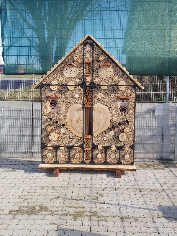 Die sieht nicht ganz so schlimm aus wie die übliche Baumarktware, die Holzstückchen und die Ziegel können allerdings gleich wieder ausgebaut werden. Was ist das für Zwischenmaterial? Wie tief ist das Konstrukt? "Insektenhotels" sind kein Artenschutz, es nisten fast nur häufige Bienen drin aber um überhaupt auf Wildbienen aufmerksam zu machen, ist das schon in Ordnung.