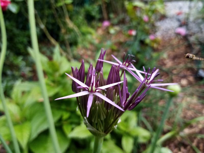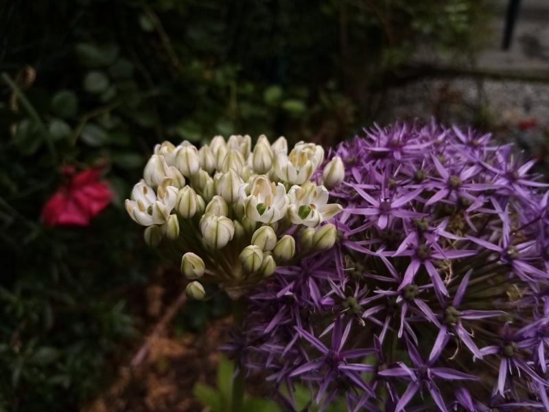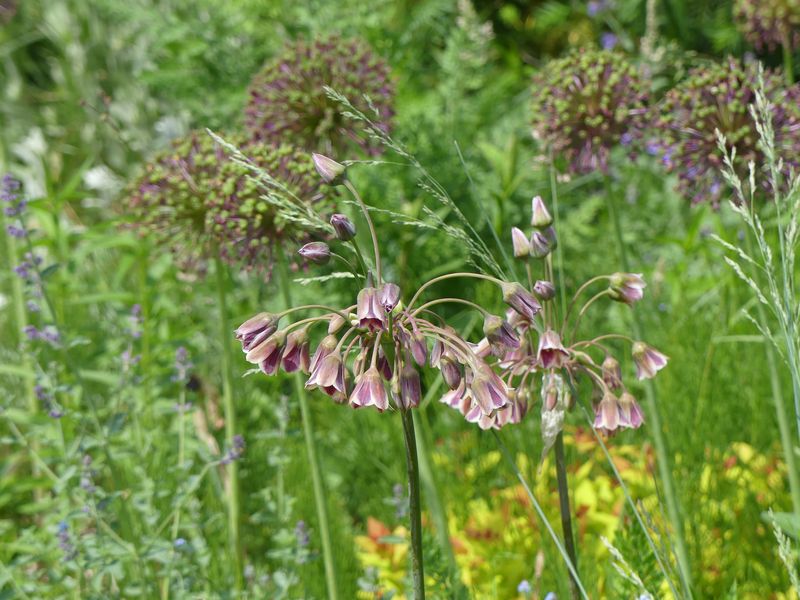 kann jemand spontan diesen Allium identifizieren. Er wächst in diesem Jahr als Einzelexemplar in unserem Vorgarten. Ich habe ihn dort nicht hingepflanzt. Es sei denn, er war als blinder Passagier unter den anderen, von mir gepflanzten Alliümern. Er ist hoch, etwas 80 Zentimeter oder vielleicht sogar hundert. Ich finde die runden Blättchen der Einzelblüten auffällig. Gar nicht so typisch alliummäßig.