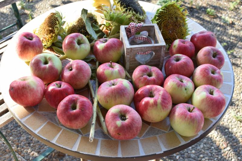 Vorgestern wieder Nashi, Birnen und Äpfel geerntet. Die Nashi sind immer sehr klein und dieses Jahr auch sehr schorfig. Bei den Birnen weiß ich leider die Sorten nicht mehr. Eine ist entweder Williams Christ oder Clapps Liebling, die andere könnte Conference sein. An Äpfeln habe ich Cox Orange aufgelesen und Elstar von einem abgebrochenen Ast abgemacht.