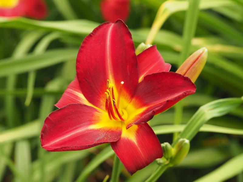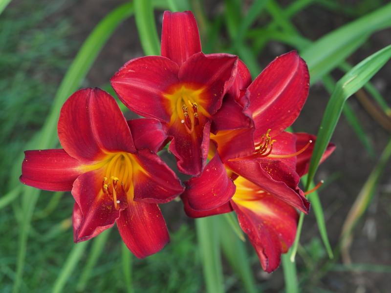 Hallo an die Taglilienkenner. Kann mir bei der Bestimmung der beiden gezeigten Taglilien jemand helfen. Beide Taglilien blühen das erste Mal bei mir und beide haben einen schönen samtigen Farbton. Leider habe ich die Schilder verloren. Wenn mir jemand helfen kann bin ich sehr froh und bedanke mich sehr herzlich. Die ersten beiden Fotos gehören zu der gleichen Pflanze. Das dritte Foto ist dann die andere Sorte. Die Namen müssten "Berlin red Velvet" und "Christmas is" sein.