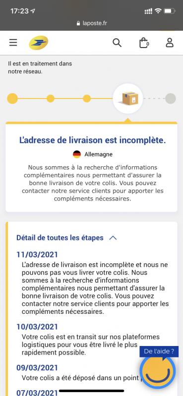 Was meinst du mit "wartet auf meine Adresse"? Wann ist das weggegangen? Wahrscheinlich Dienstag?