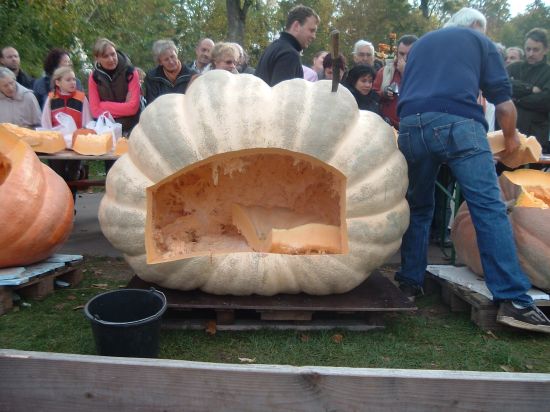 Ich will euch mal ein größeren Kürbis als unsere zeigen. Das ist der Sieger von Europa (über 500 kg).
