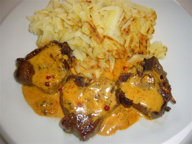 vor dem Dessert # 162, gab es heute:NüsslisalatLammkotelette an Pfeffersauce und Rösti