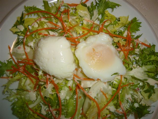 Heute abend gab es:Blattsalat mit pochierten Eiern