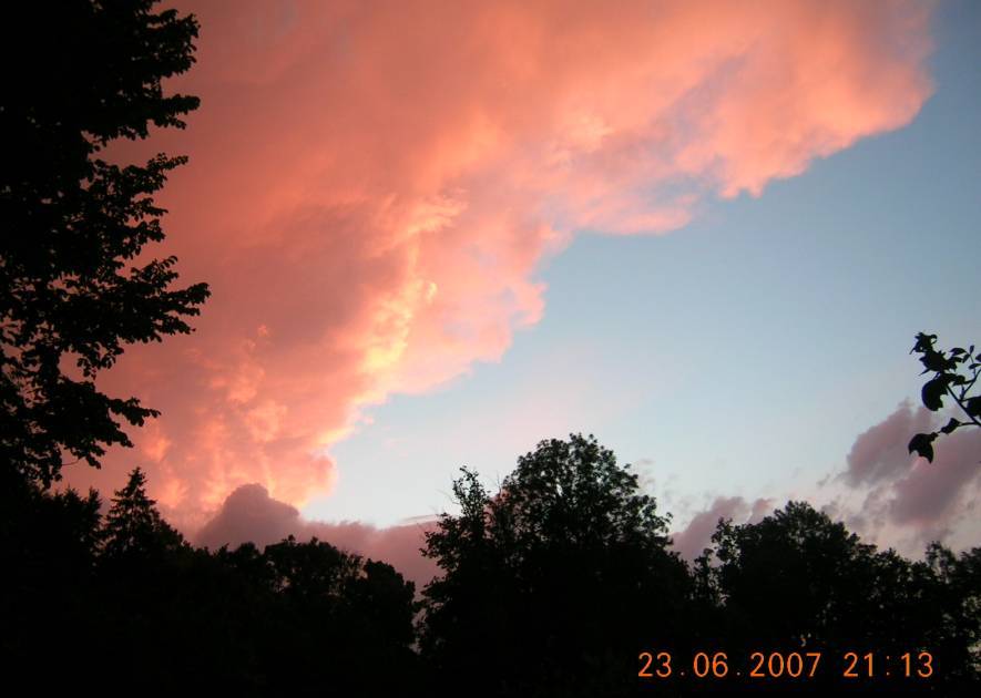 Heute wird es nicht waermer als 17°C und der erste Regenschauer erreicht uns gerade...Ich find's gut so!Die Prognosen sagen bis Mittwoch einen weiteren Temperaturabfall auf 14-16°C an. Mittwoch ist Siebenschlaefer, so dass sich langsam in mir die Hoffnung regt, dass wir dieses Jahr endlich mal keine erbaermliche Hitzewelle durchstehen muessen. das waere sooo toll!Natuerlich hoffe ich auch, dass wir von weiteren Unwetterkatastrophen verschont bleiben. Die geposteten Bilder sind absoluter Wahnsinn. Das muss ja nicht sein.