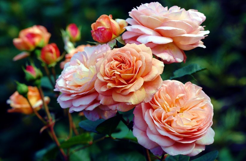 . Die Highlighs der knapp 1-jährigen Rosen:Scarman's Velvet China 5 KnospenClair de Lune 5 Blüten, 1 KnospeBlossomtime 5 Blüten, 6 Knospen trotz massiv MehltauHeritage 1 Blüte, 14 Knospen