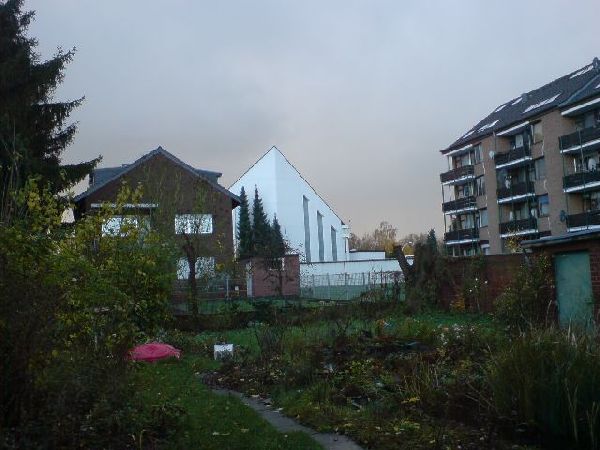 bei grauen himmel fällt mir das hier ein...so sah der himmel vor ein paar tagen bei meinen eltern aus....plötzlich wirkte die -in meinen augen hässliche-betonkirche strahlend-weiß...witziger effekt, dachte ich, und griff zur handykamera ;)leider ging das blau-weiße "strahlen" der kirche beim verkleinern wieder etwas verloren