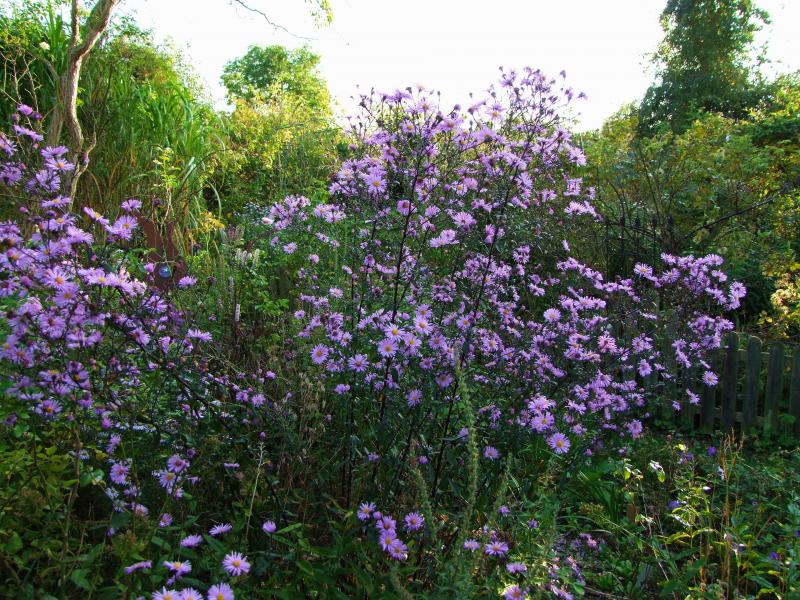Sogar auf unserem Brandplatz haben sich verschiedene Aster novi-belgii (heißen wohl nicht mehr so?!?) ausgesät.Ihr Ausbreitungsdrang ist unbändig.Foto muss ich da nachliefern.