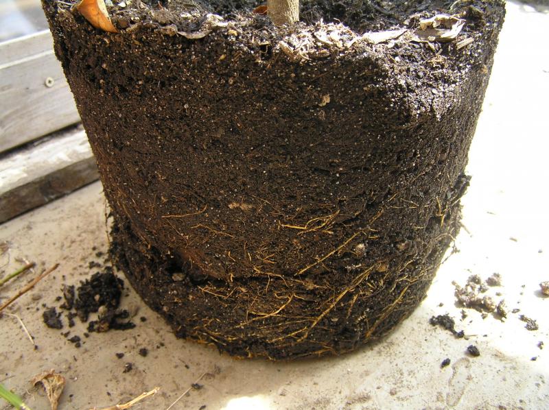 Der Wurzelballen sieht eigentlich intakt aus und riecht auch nicht faulig, sondern nur nach leicht feuchter Erde .... vielleicht bringt der Aufenthalt im Schatten was ???