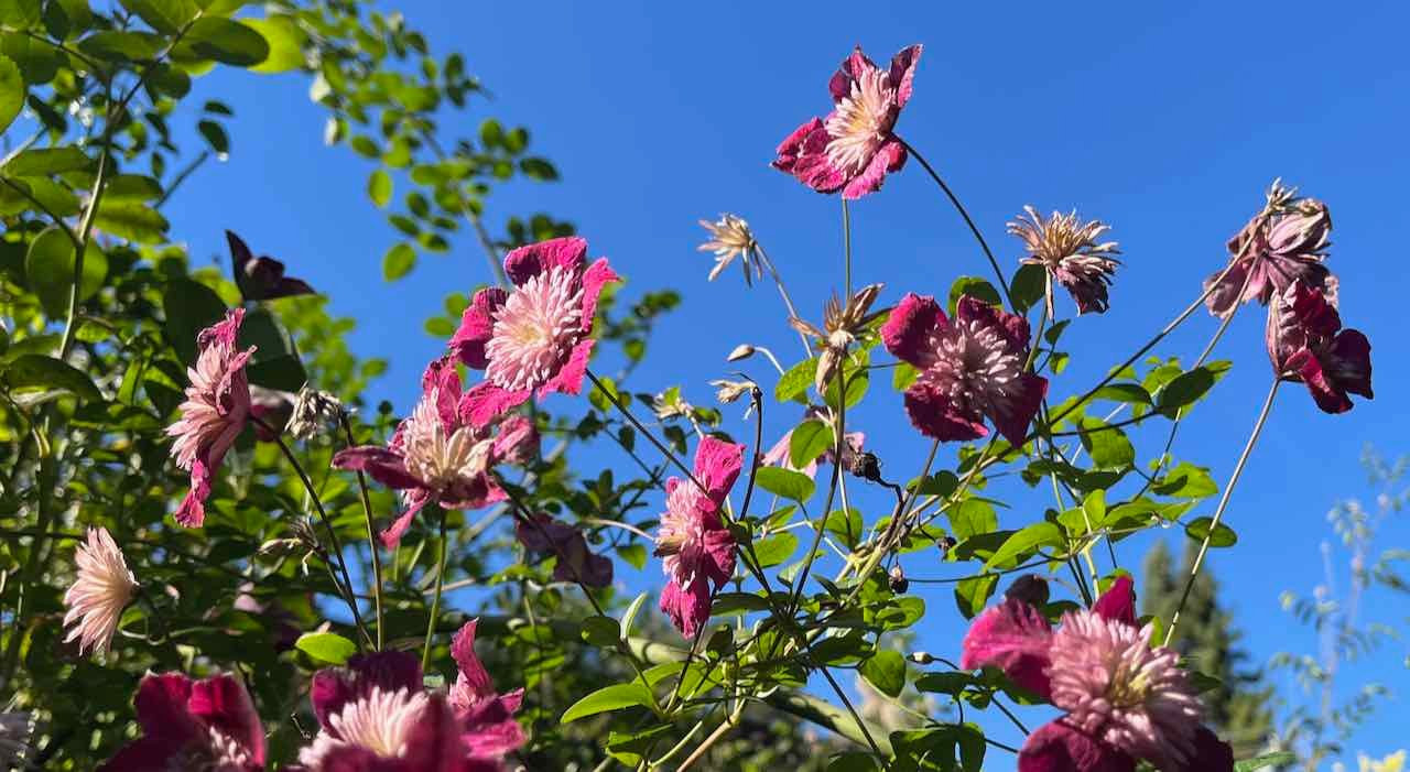 An meinem Rosenpavillon blüht jetzt im Oktober eine wunderschöne Clematis. Ich weiß aber nicht mehr, woher ich sie habe und wie sie heißt. Kennt sie jemand?
