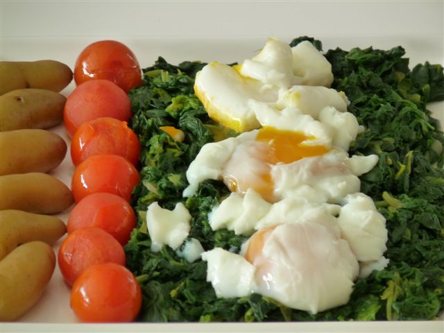 Hoppla, so ging mir auch schon, dann gab es bei mir immer Brot mit Marmelade und Käse.Heute gab es frischen Blattspinat (Italien), pochierte Eier (von glücklichen Hühnern), die nicht so auf den Spinat wollten, wie ich es wolltehier gabs - möglicherweise aus unbewusstem frust und selbsthass -*