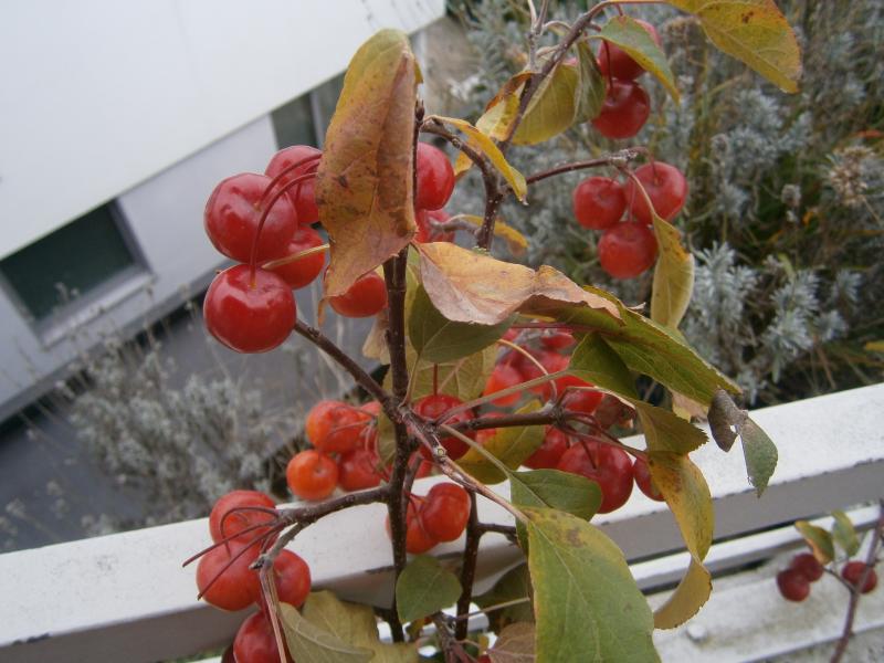 Und von den zwei Sorten hat Evereste die leuchtenderen Farben (Frucht und Herbstfärbung) und den schöneren Wuchs, denn Red Sentinel hat schneller mal eine "Schieflage".