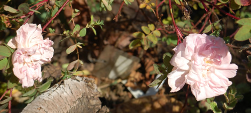 Auch hier ist Stanwell Perptual mit zwei Blüten und einer Knospe vertreten, Westerland mit einigen Knospen und einer Blüte, die Knospen von Maigold bewegen sich seit zwei Wochen nicht mehr und der Strauch ist nach seiner schönen Herbstfärbung fast kahl.