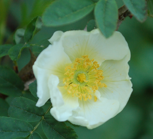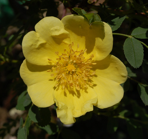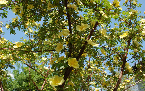 Die hat ja schon etwas unter dem Winter gelitten, blüht nun aber sehr schön: Rosa hugonis