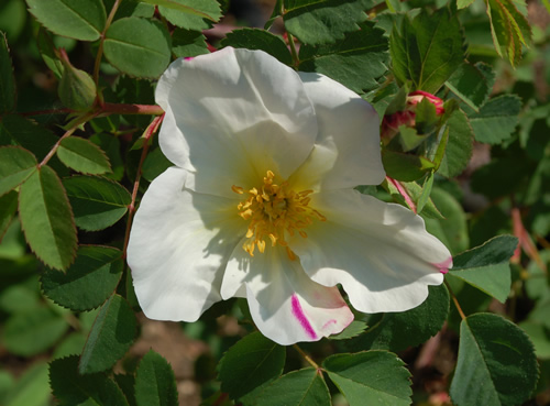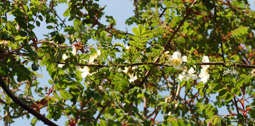Was, Irisfool, bei Dir blühen auch schon Rosen! 8)Hier beginnen sie auch zu blühen.Die Stacheldrahtrose: