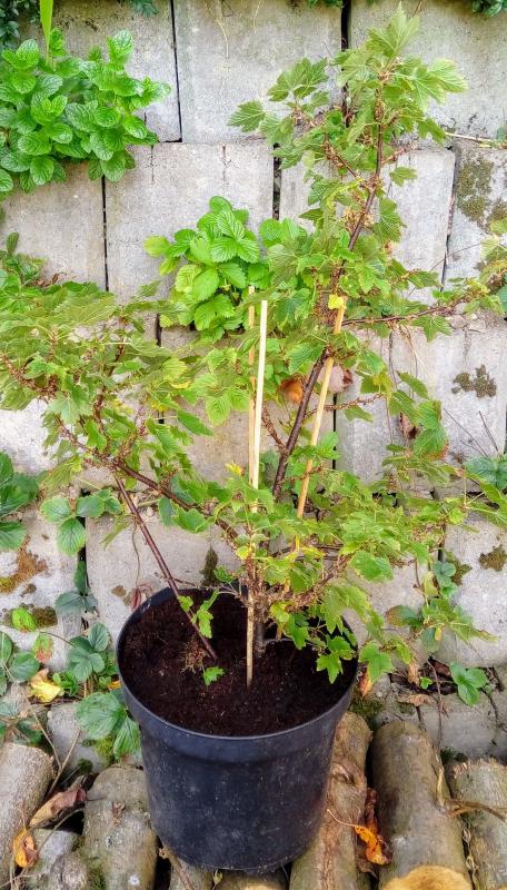 Ich weiß nicht ob und wenn ja, wann ich es erwähnt habe, aber ein größerer Ast von der Mutter aller meiner rotblättrigen Johannisbeeren, hatte einen schweren Rindenschaden. Ich entschloss mich daher den Ast abzumosen. Heute habe ich den Ast abgemacht und eingetopft. Ich habe nun eine neue 40 cm Pflanze ;D