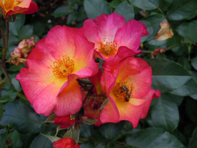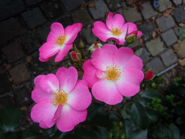 Auf der Landesgartenschau Schwäbisch Gmünd wurde ein Rosengarten für die Partnerstadt Antibes angelegt.Ganz nett.Aufgefallen ist mir, dass ganz oft "ADR-Rose" auf den Schildern stand. Optisch bekannt z.B. die Rose "Yann Arthus Bertrand". Sah verdächtig nach Pretty-Sunrise aus. Wie ich jetzt weiß, ist das der Originalname. Klingt für mich gleich besser als son Pretty-Gedöns.Viele Rosen waren auch dort nackig, auch welche mit ADR. "Yann Arthus Bertrand" hatte jedoch gesunde Belaubung.Ebenso eine Rose, die ich vorher nicht kannte: "Siesta" Wunderschöne einfache Blüten in leuchtendrosa mit weiß. Und süßer, leichter bis mäßiger Duft. Pumperlgsund. Nach Recherchen heißt das Teil bei uns zum Abgewöhnen "Phlox Meidiland".Auch andere Pretty´s waren vertreten, alle unter dem Orignialnamen. Ich vermute mal, die Partnerstadt hat die Rosen in F besorgt. Die anderen Pretty´s (gelb und weißrosa) waren allerdings nicht ganz so gesund.Warum muss man bei uns so wohlklingende Namen so furchtbar verunstaltet umtaufen