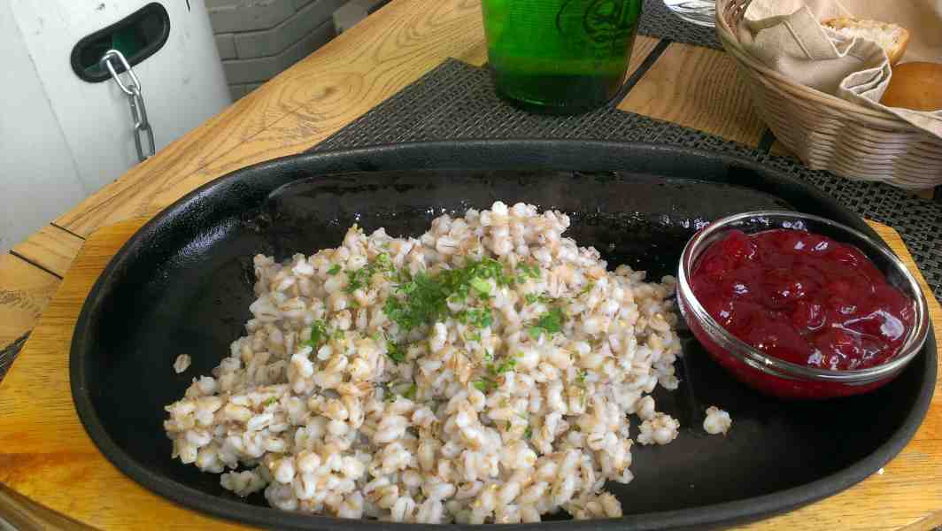 Am nächsten Tag, nach dem Besuch eines Museums fielen wir Mittags ins Salve ein, wo ich unbedingt eine lettische Spezialität probieren musste: gebratene Blutwurst mit Gerstengraupen und Preiselbeeren. Nie hätte ich mir vorher vorstellen können, dass Graupen so gut schmecken können. Die Wurst war sowieso vom Feinsten (wenn man das von so etwas Bodenständigem sagen kann).