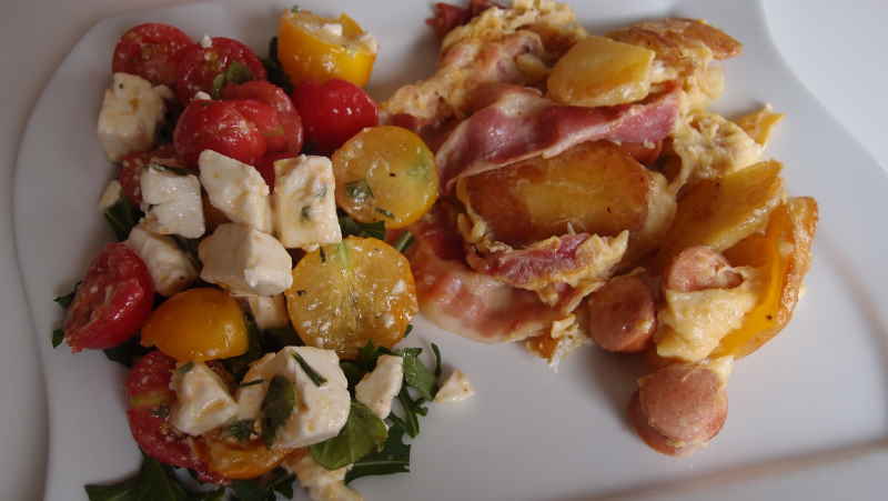 aus den zuviel gekochten kartoffeln gabs am nächsten tag restebauernfrühstück und tomatensalat mit schafskäse