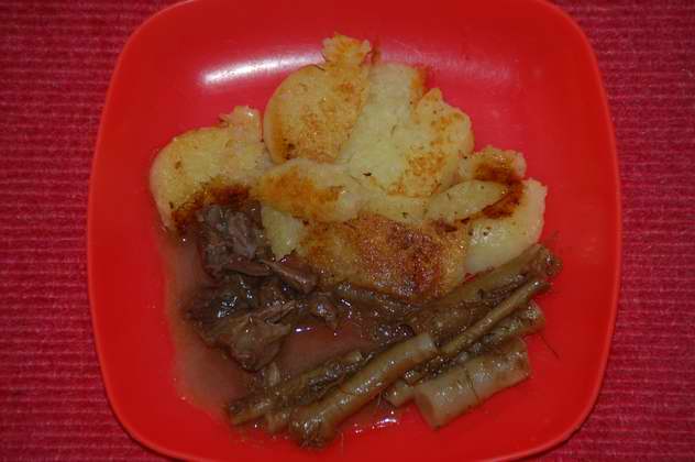 Leider sind meine Kochtage praktisch auf das Wochenende zusammengeschnurzelt, so dass ich hier fast nichts Kreatives mehr beitragen kann, sondern immer nur die Lieblingsessen-Liste rauf- und runterkochen muss. Es gab also am Samstag wieder mal Dampfnudeln mit Apfelmus und Vanillesoße; gestern Abend eine längst fällige Lammkeule aus dem TK nach diesem Rezept. Sehr zu empfehlen, Fleisch schön zart und saftig, auch ohne Marinade über Nacht, ich hatte sie nur zwei Stunden vorher gründlich mit Rosmarin und Knoblauch eingerieben. Sößchen sehr lecker! Dazu gab es Rotkraut und Kartoffelbrei. War gut und reicht für heute noch mal.