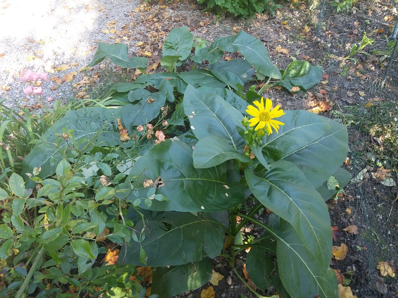 In unserer Gartenanlage gibt es jemanden, der jeden Herbst sein Silphium perfoliatum runterschneidet und gebündelt in den Grünabfall gibt. Letzten Herbst habe ich die Bündelkurzerhand gekapert, gehäckselt und damit gemulcht. Im Frühjahr hatte ich nur noch die Stängelreste, die sich problemlos beiseite harken lassen, und schöne lockere Erde.