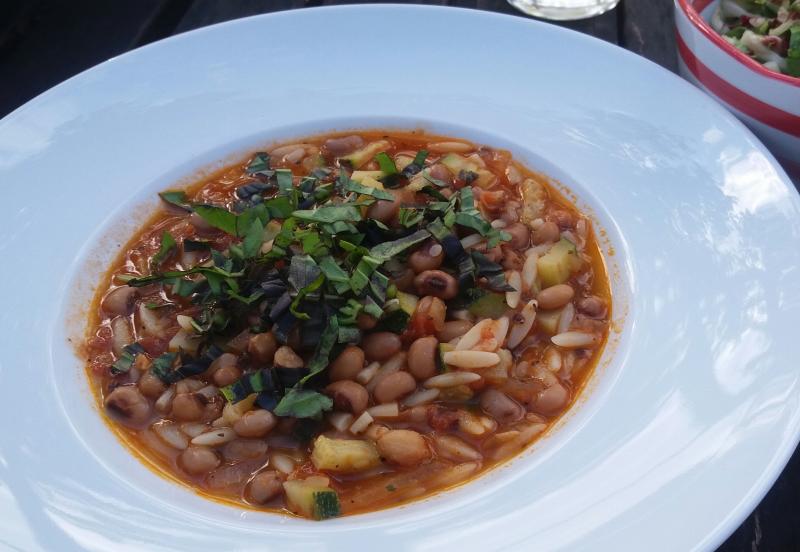 In den letzten Tagen gab es Krithiraki mit Schwarzaugenbohnen und Zucchini.