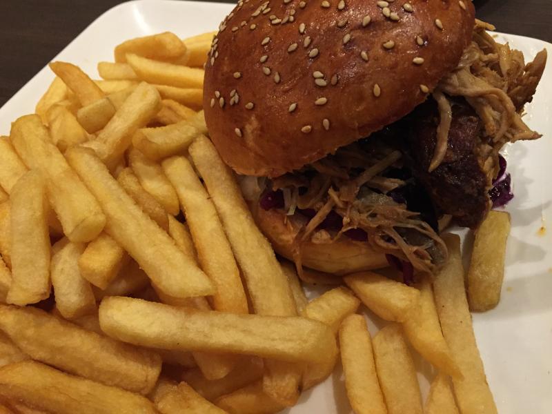 hier gab es gestern zum abschluss eines schönen tagesausflugs pulled pork burger in der lokalen gastronomie.