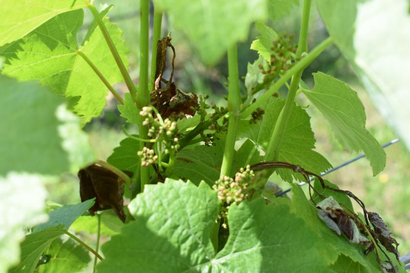 Die Reben treiben Blüten trotz frostiger Nächte im April, Mai.