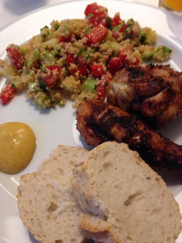 Und hier trotz des schlechten Wetter hähnchenkeulen vom Grill mit tabouleh